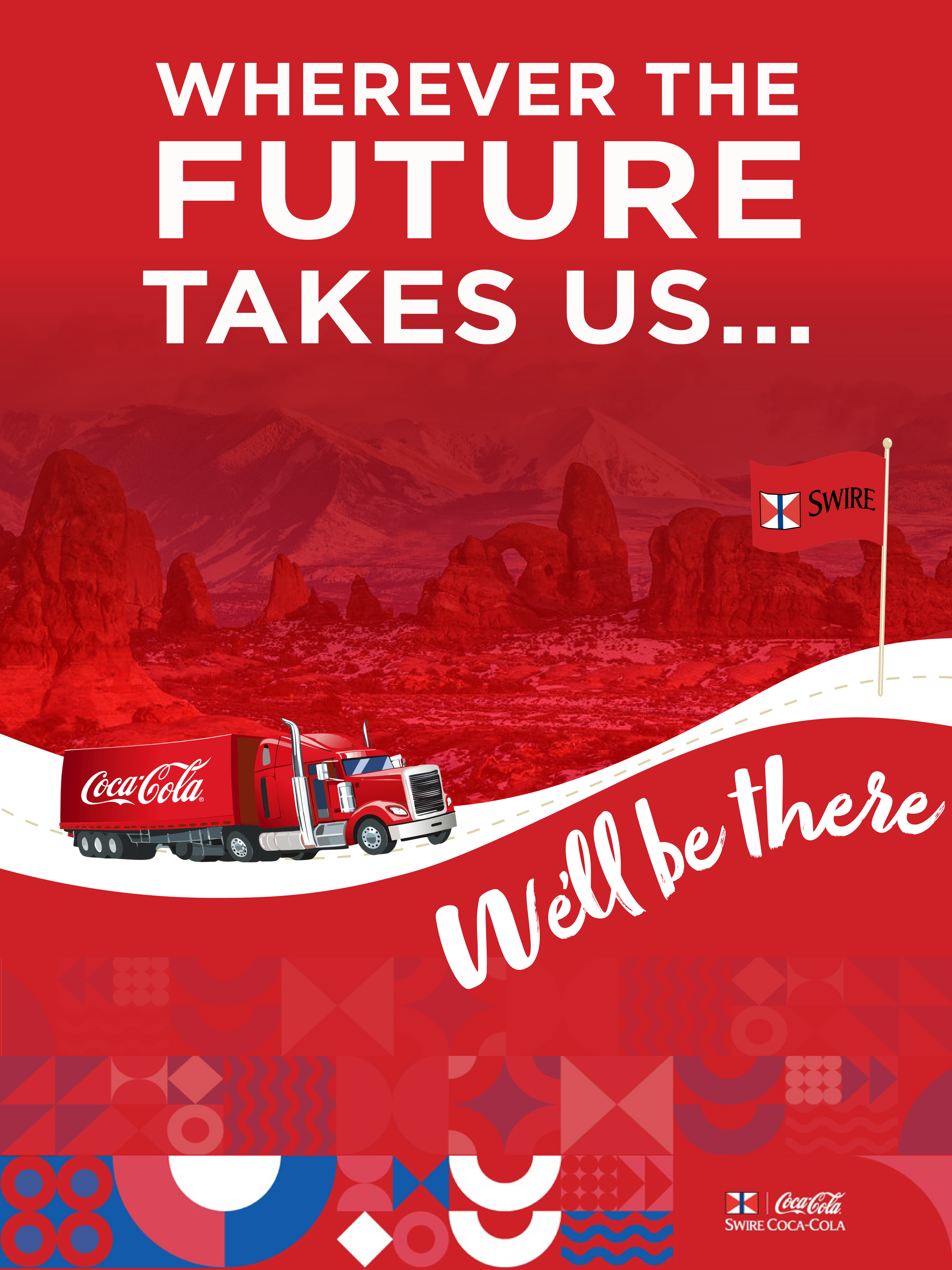 I designed this mock poster for Swire Coca-Cola based on quote said in their “Who Are We” video. I chose to use the Coca-Cola Dynamic Ribbon Device (DRD) as the reference shape for a dashed line to symbolize a road for a red Coca-Cola truck. I wanted the truck and road because of the “We’ll be there” showing how Swire trucks will always be delivering drinks to the people.